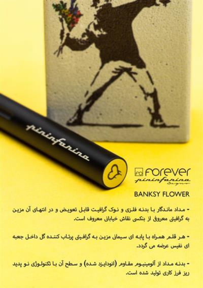 - مداد ماندگار با بدنه فلزی و نوک گرافیت قابل تعویض و در انتهای آن مزین به گرافیتی معروفی از بنکسی نقاش خیابانی معروف است.