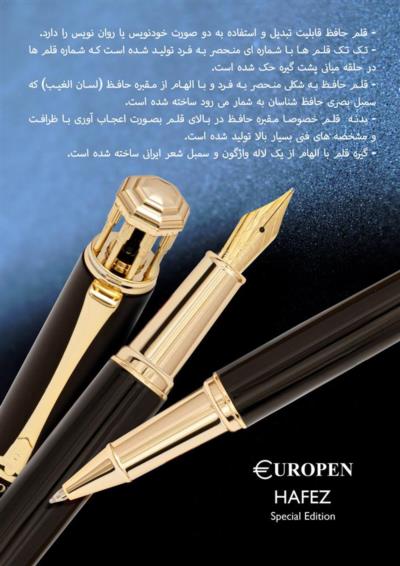 - قلم حافظ به شکلی منحصر به فرد و با الهام از مقبره حافظ (لسان الغیب) که سمبل بصری حافظ شناسان به شمار می رود ساخته شده است.