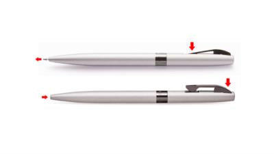 - دارای مکانیزم منحصر به فرد روی گیره. به گونه ای که با فشار مقطع پایینی گیره نوک خودکار بیرون می آید و با فشار مقطع بالایی گیره نوک خودکار به داخل رفته و می توان گیره را در لبه جیب قرار داد.
