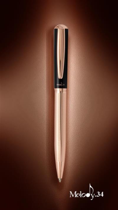 - فرم خاص گیره، مقطع گنبدی شکل بالای قلم و ترکیب طلایی رز گلد با مشکی وجه تمایز این قلم می باشد.