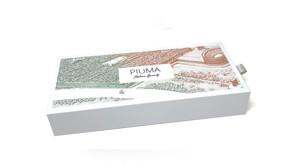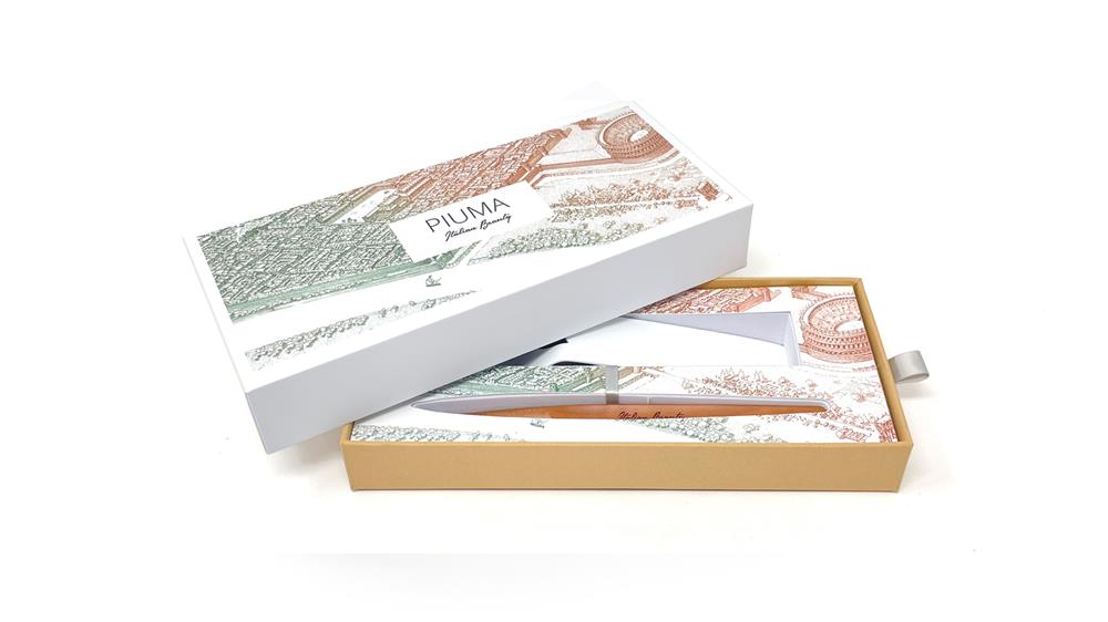 - ست پیوما (به معنی پر در زبان ایتالیایی) که شامل قلم و پایه می باشد به با الهام از لئوناردو داوینچی (نابغه بشریت) تولید گردیده است.